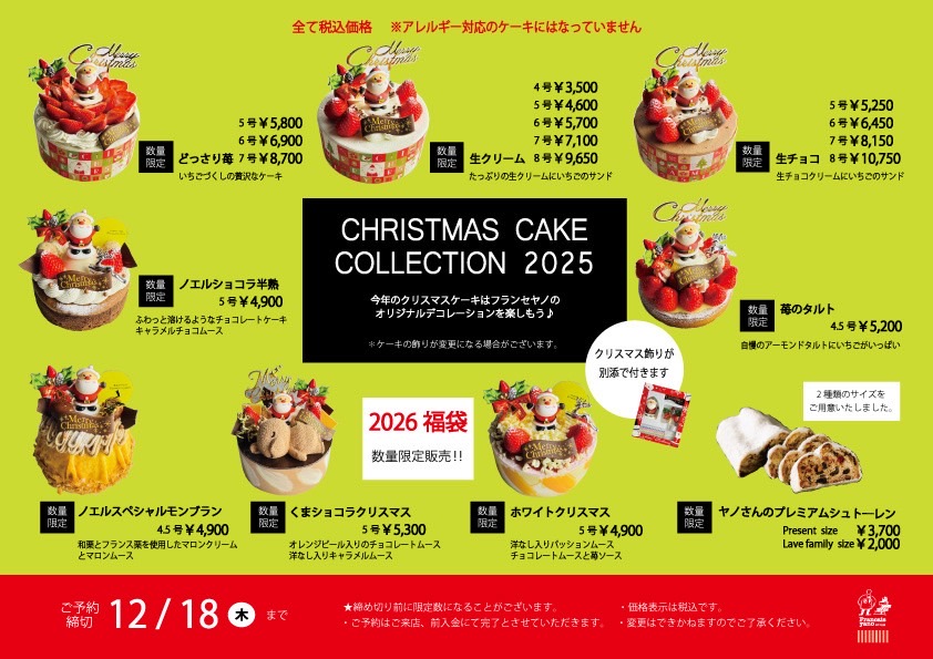 | 2022.12.19 | クリスマスケーキ予約終了のお知らせ |