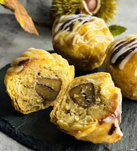 バター香るサクサクのパイに和栗とイタリア産栗を使用したクリーム。アクセントにアップルソースをそっと忍ばせ、さっぱりといただけます。