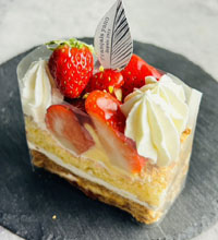 サクサクのパイにスポンジとカスタードクリーム、苺を組み合わせた人気のケーキ。